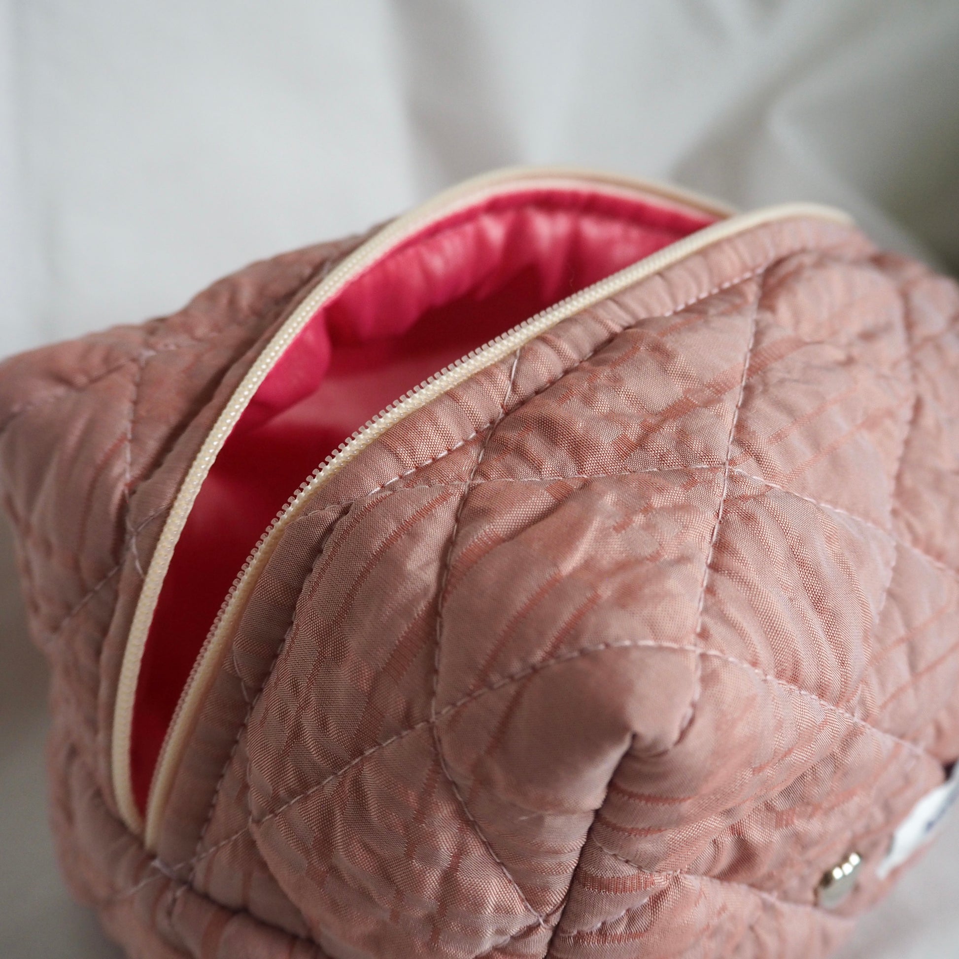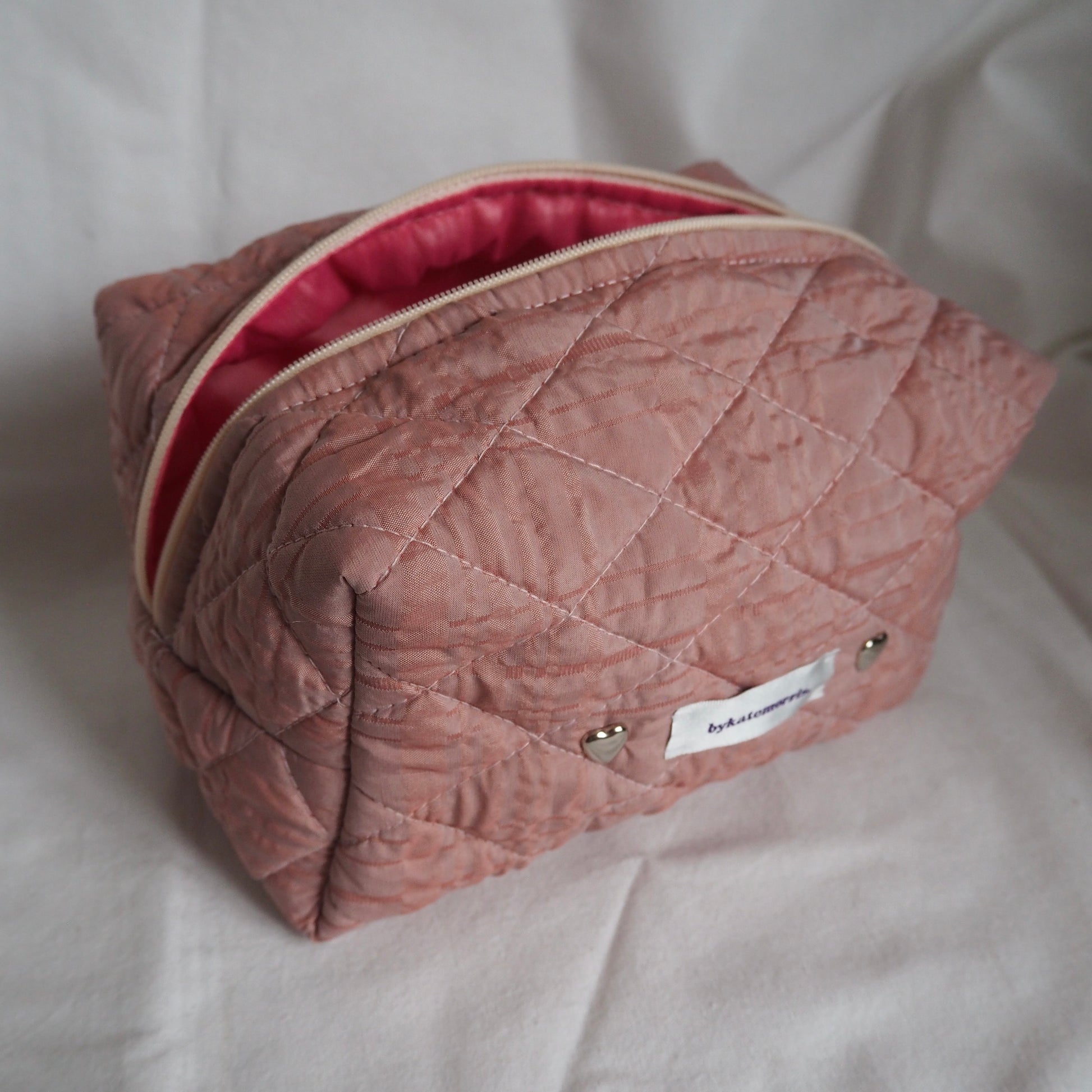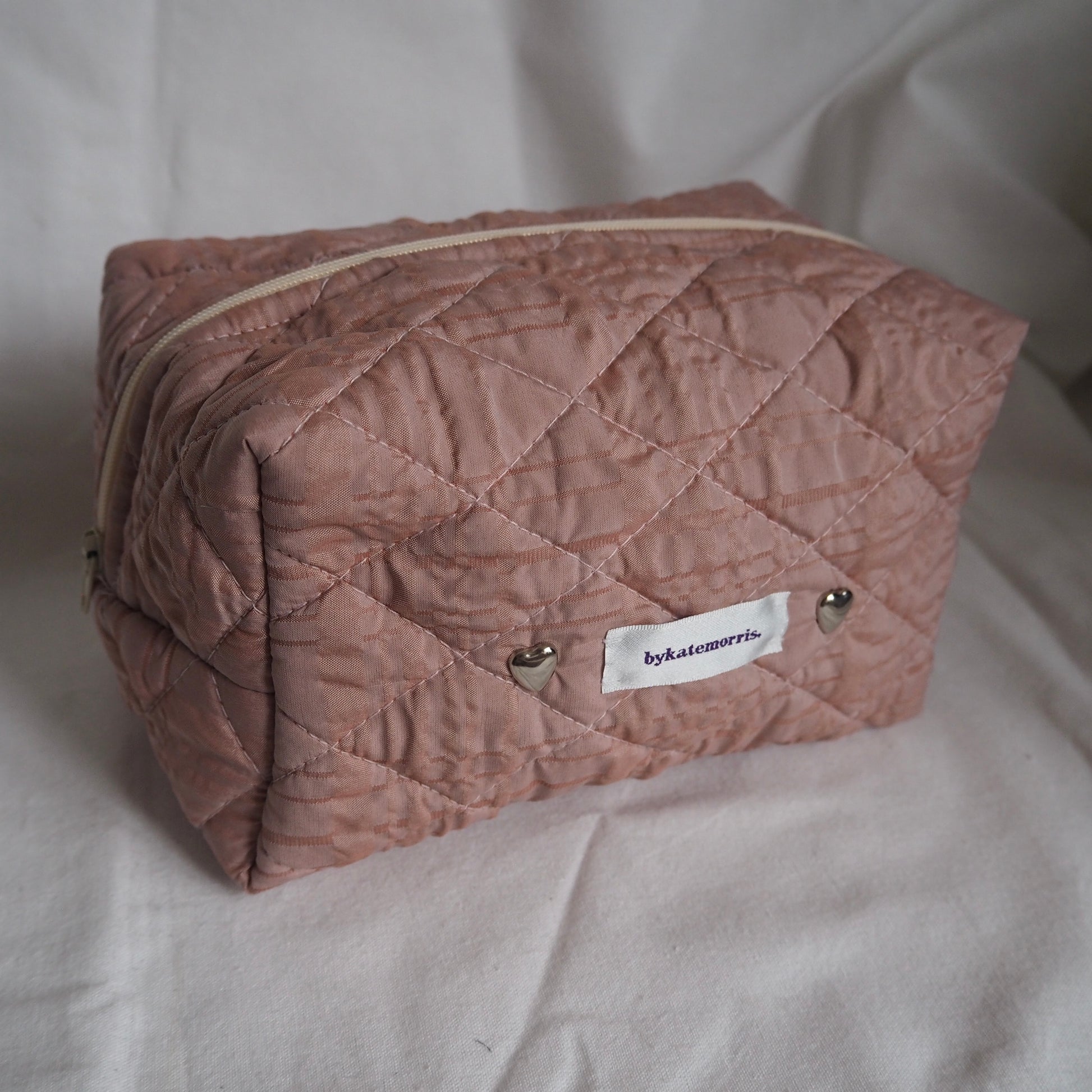 This handmade pink checkered tonal makeup bag is perfect for the make-up lover. With a vibrant pink lining and love hard details, keep your make-up organised and easily accessible. Add this bag to your collection for a touch of style and functionality.